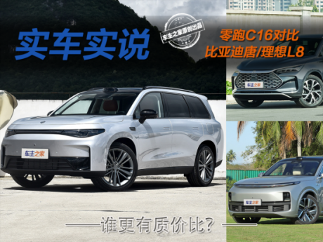 为了能直观体现零跑C16的产品力和质价比,我们给零跑找来了两台对比对象作为参考,一台是20万元内大厂的成熟之作比亚迪唐,另一台是同级别家用的标杆之作理想L8,让我们来看看它的实力究竟如何?