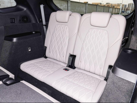 对比完外部尺寸我们再讲讲内部乘坐体验,领克08由于采用了CMA-Evo架构,使得其拥有71%的得房率,在更长轴距+高得房率+大五座的设计的加持下,领克08拥有了935mm的后排腿部空间,坐垫长度也达到了505mm,还可实现118°-123°两档调节,在装载能力上,领克08后备箱常规容积545L,最大可扩展至1277L。