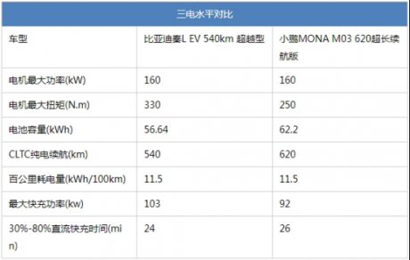 而在续航上,小鹏MONA M03是更厚道的那一个,而且两车用的都是比亚迪的电池,所以基本上就是谁电池大谁续航能力更强。在能耗上,两车12.98万元的中配版本百公里电耗都是11.5度,秦L EV入门版本可以做到10.8度的百公里电耗,不过动力数值上,110kW的最大功率和220N.m的最大扭矩相比中配就弱了不少,能耗低也在情理之中,不过总的来看两车都是电耗很优秀的车。