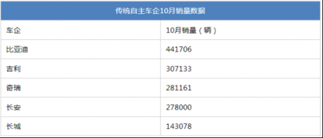 咱们先来看一些传统自主车企的销量表现,比亚迪10月销售441706辆,创下年内新高。而吉利集团10月销售307133辆,吉利银河提前达成年销百万目标。长安汽车10月销售27.8万辆,奇瑞汽车10月销售281161辆,集团新能源首次月销突破11万辆,长城汽车10月销售14.31万辆,新能源车型与海外月销同比均有大幅增长。