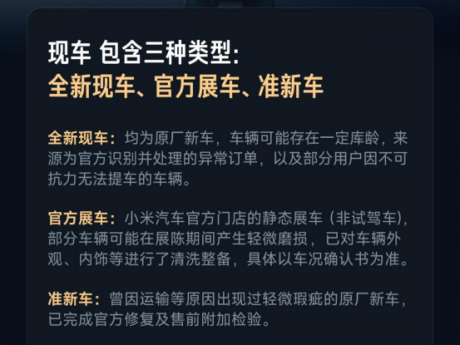 这便是小米今天刚推出的现车选购服务,12月1日针对已锁单未交付的用户,可以优先改配同车型的现车,12月3日开始会面向所有用户开放,12月26日24点前锁单,预计2025年底前就能提车,这些车型均为未登记车辆,也就意味着这些车你买来不算二手车,不仅官方给你修复了,还享受完整的原厂质保和售后,并且部分车型还可享受优惠。