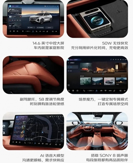 内饰方面,新车采用14.6英寸大尺寸中控屏搭配液晶仪表,并配备FaceID 3.0人脸识别系统。新车换装全新方向盘及换挡机构,提供50W手机无线充电等。