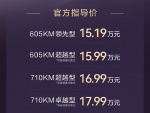 动力方面,新车搭载的电机最大功率为207kW,峰值扭矩320N·m。并提供600km、700km、710km多种续航。